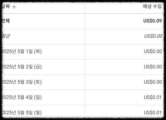 광고도 달고, 글도 몇 편 올렸고, 드디어 수익이 발생했겠지… 하는 마음으로 대시보드를 열었죠.